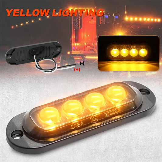 4PCS 4LED Truck Grill Lights 12V/24V Trailer Truck Side Marker Lights Position Lights Sealed Smoked LED Amber Lights for Trucks